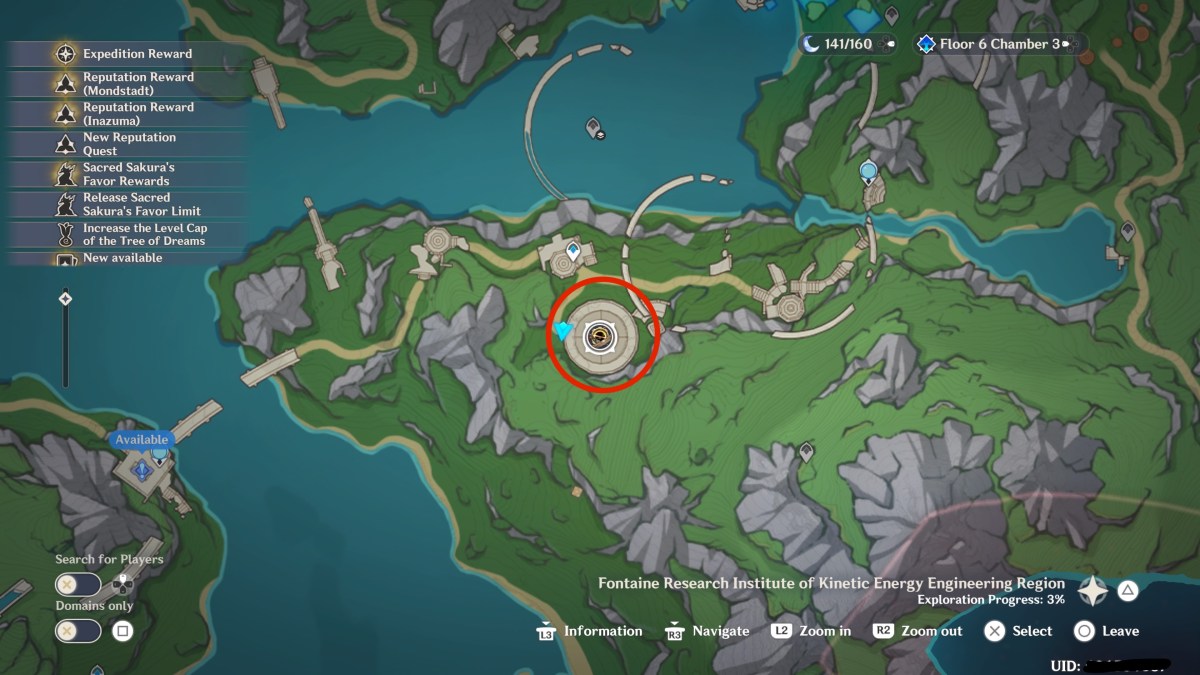 At the far north part of the same landmass where the city of Fontaine is located, you’ll see a Statue of the Seven fast travel point. It’s right near a broken bridge and on a building. Either journey to it or fast travel to that point. From there, run across the broken bridge, and essentially follow the road. You’ll encounter a few enemies, but this is honestly the fastest way.