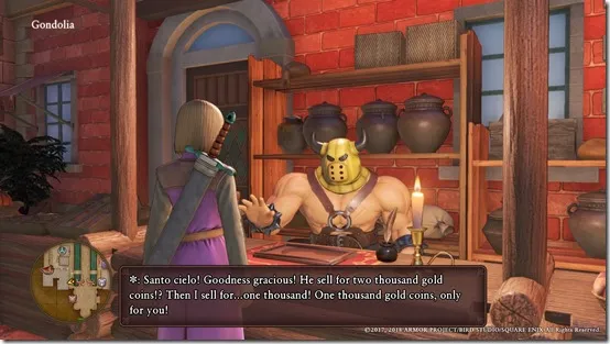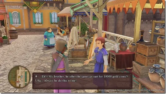 It is a fairly good outfit, especially if you invest Perfectionist Pearls at the Fun-size Forge to bump up its stats a bit. (I had Veronica wearing it until I hit the open seas.) I am unsure if this Dragon Quest XI costume is available after the initial visit to Gondolia, so make sure you have 2,250 set aside and take care of this little mission before you leave town!