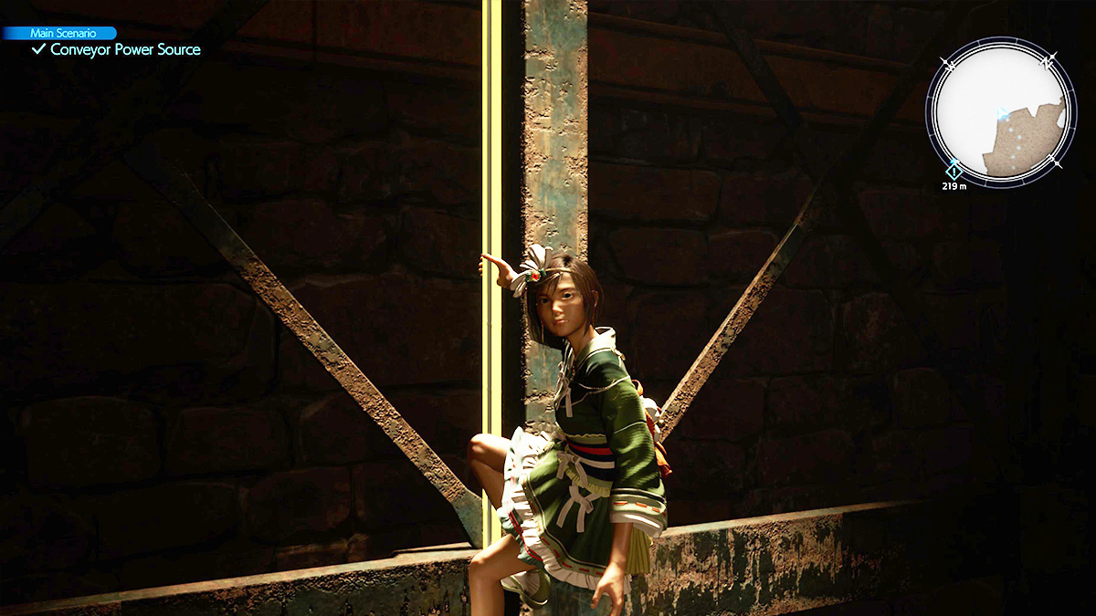 With the Generator now activated, it’s time to head back to the main entrance room of the Coal Mines. Look for two yellow conveyor poles that should now be going up on the left side and going down on the right. Have Yuffie grab the left pole and ride it all the way to the top floor.