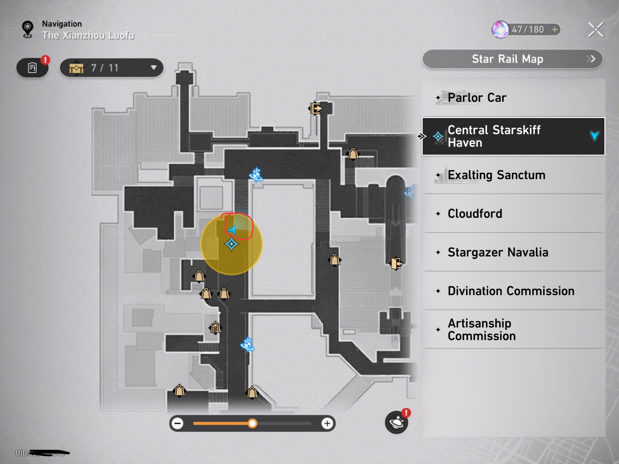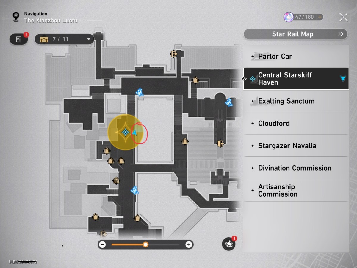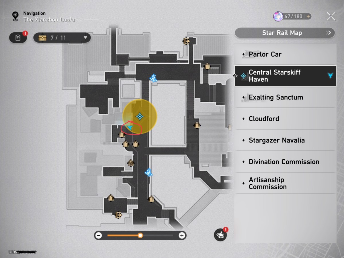 First, you’ll talk with both Asta and Wen Furui to get a better grasp of the situation on Herta Space Station. It will end with you heading to the Xianzhou Luofu to deliver the item Wen Furui’s Gift and investigate the Foxian Beauty Diaqing. Once you get to the Central Starskiff Haven, you’ll need to try and find your Daiqing contact. This is one of those highlighted spaces where you’ll have to find and talk to three folks. In each case, you’re supposed to say the keyphrase, “Acquaintance from the mortal coil, luxurious gifts from beyond.” The three people to speak to here all have a name over their heads, making them easy to identify when you’re near them. You want to talk to the Passerby Hunk, and Sociable Foxian Man. Here are screenshots I took showing what each one looks like and where they are in the area.