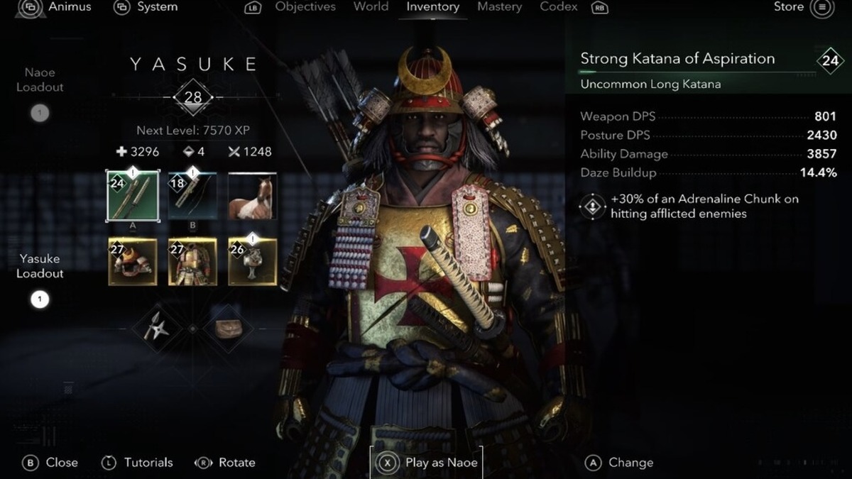 The same goes for Yasuke as well with the helmets that he wears. You are able to hide these and show off the samurai’s face anytime. The best part about this is you don’t lose any of the stat boosts and bonuses that come with the equipment items. You don’t need to unequip your headgear to hide them.