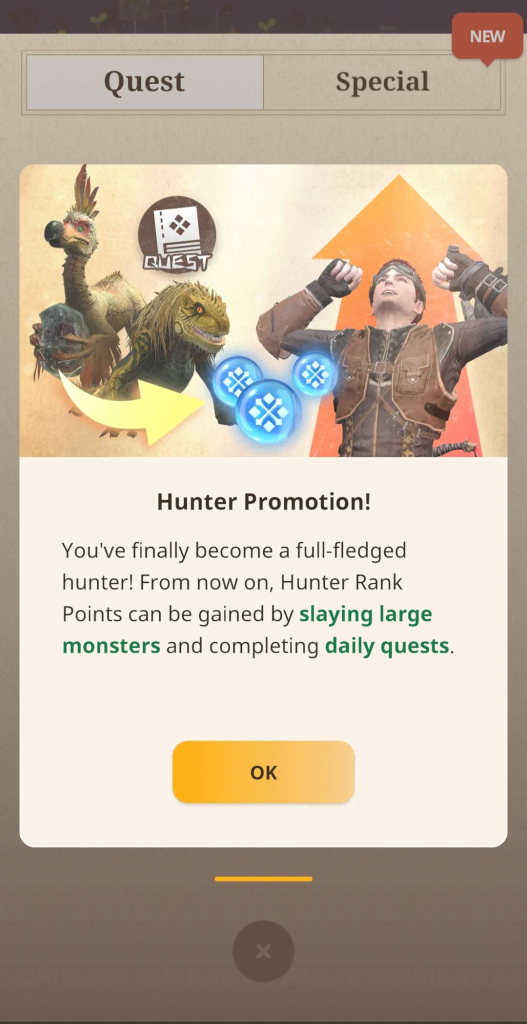 You will complete Quests as you progress through the Tutorial, which will effectively teach you how to play Monster Hunter Now. This includes how to Hunt monsters, how Paintballs work in the mobile game, and various other mechanics like how to dodge. Most Quests involve harvesting a specific amount of materials, slaying Monsters of specific Grades, or meeting specific requirements.