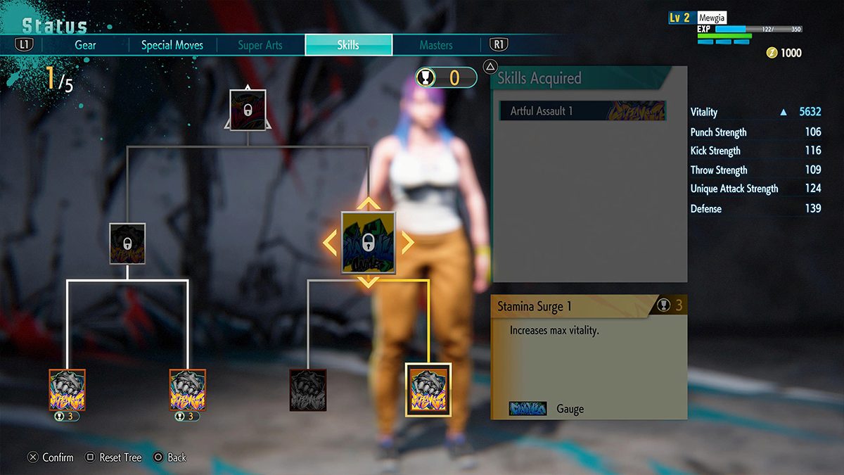 In Street Fighter 6 World Tour, your health doesn’t recover after fights. Like an RPG, you must keep an eye on your HP as you explore to avoid being knocked out. The higher your HP bar is, the longer you will be able to survive against stronger opponents. It only took me a few minutes of exploring Metro City before I found myself losing fights due to not having enough health. (I know, I’m a disappointment to Master Luke!) Thankfully, you can upgrade your Vitality stat fairly early game by leveling up your character. To increase your Vitality in Street Fighter 6 World Tour, you need to acquire the Stamina Surge 1 perk in your Skills menu. The upgrade can be purchased for three points in the first tier of your Skills tree, accessed through the Status app on your phone. You can purchase additional Stamina Surge perks as you continue to level up your character. However, you are limited to how many you can unlock on each tier of your Skill tree. Make sure to choose wisely, or you might lock yourself out from upgrading your Vitality stat!