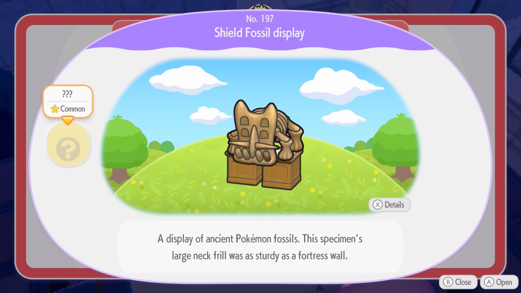 First, you need to find fossils in the world by breaking apart glowing blocks with Rock Smash. It’s not guaranteed you’ll find one, and having a Dowsing Machine with a character like Fidough can help your odds. When you do get pieces, you’ll potentially find 1×1 like a Jaw Fossil (Tyrunt) or Armor Fossil (Shieldon). Multipart fossils that consist of three parts, like the Wing Fossils (Aerodactyl) or Despot Fossils (Tyrantrum), require a 2×6. To construct the habitats for each, you need a single Exhibition Stand for a 1×1 one or six for the larger creatures.