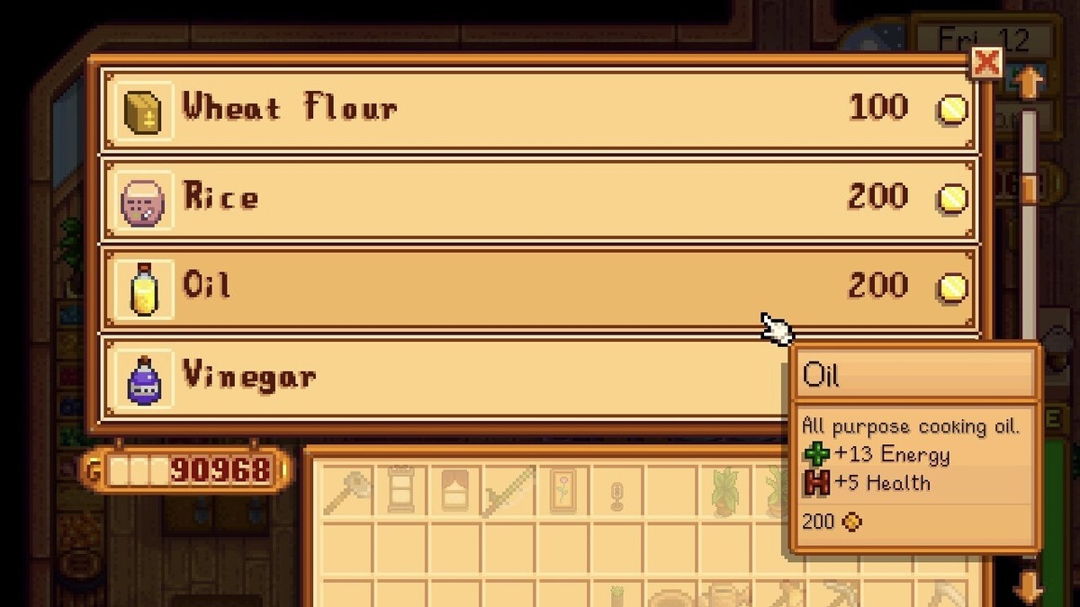 To be clear, you can easily buy oil if you are in a hurry in this game. That is possible by heading over to Pierre’s General Store anytime it is open and buying it there for 200g. That said, this is not very helpful if you need a lot or you want to save some money. In this case, you’ll want to know how to make your own from scratch.