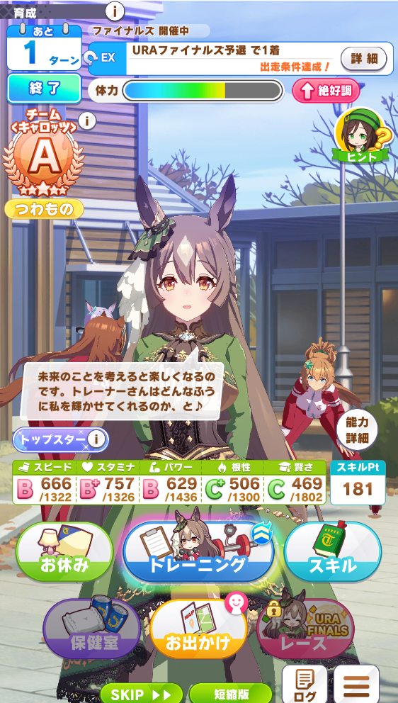 Aside from raising parameters and obtaining skills, there is an element of breeding if you want to make a strong horse girl. Every time you start a training scenario, you have to choose two horse girls to serve as dams for your new one. You can obtain potential dams by clearing a scenario with them and putting them in your paddock. Depending on RNG and factors like compatibility, you’ll get bonus stats during the training story, as well as access to unique skills your horse girl otherwise can’t use. Training up the perfect horse girl starts even before you step into Tracen Academy.