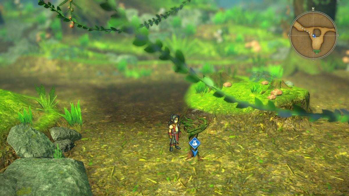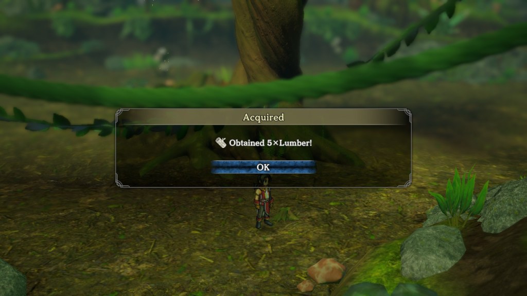 Kerrin is willing to join, but you need to prove yourself. That means getting 20 pieces of lumber. Fortunately, the trees around the Dappled Forest all provide it. Gathering at each one, which is highlighted by an animation, gives you five pieces.