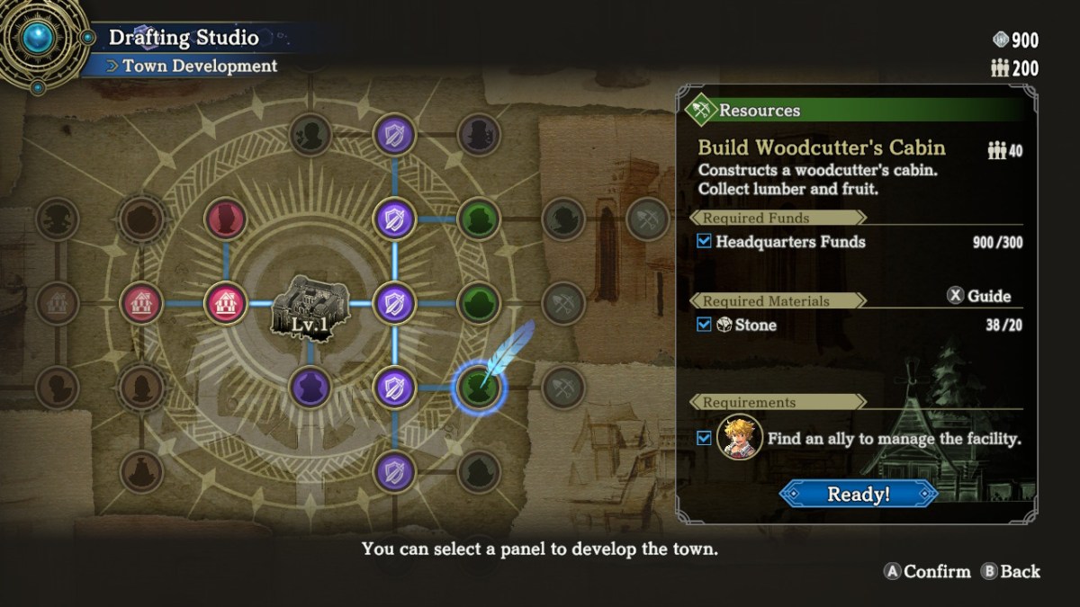 Kerrin is helpful, in that the Woodcutter’s Cabin that gives you a means of getting lumber and fruit can be built at your castle once you recruit the character. You need 300 Headquarters Funds, 20 Stones, and Kerrin for that. You’ll get the cabin and 40 more people in return.