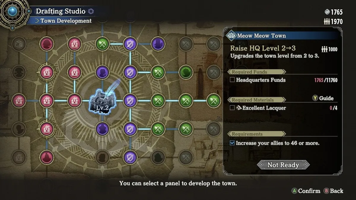 The tricky part about recruiting Syd and his workshop to your team in Eiyuden Chronicle is upgrading your headquarters to level three in the first place. Headquarters level two is already a bit difficult at this point in the game due to its requirements, but you need this for level three: