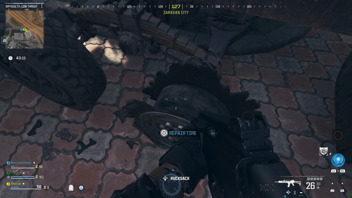 Repairing your vehicle tire in MW3 Zombies is only possible if the entire tire is destroyed completely. Your tire won’t be available for repair if it is only on fire, ripped up, or not turning properly. If this is the situation you find yourself in, you must destroy your tire first. I recommend hopping out of the vehicle and firing at the problematic tire until you see nothing but the metal axle underneath.