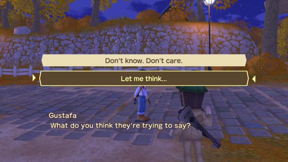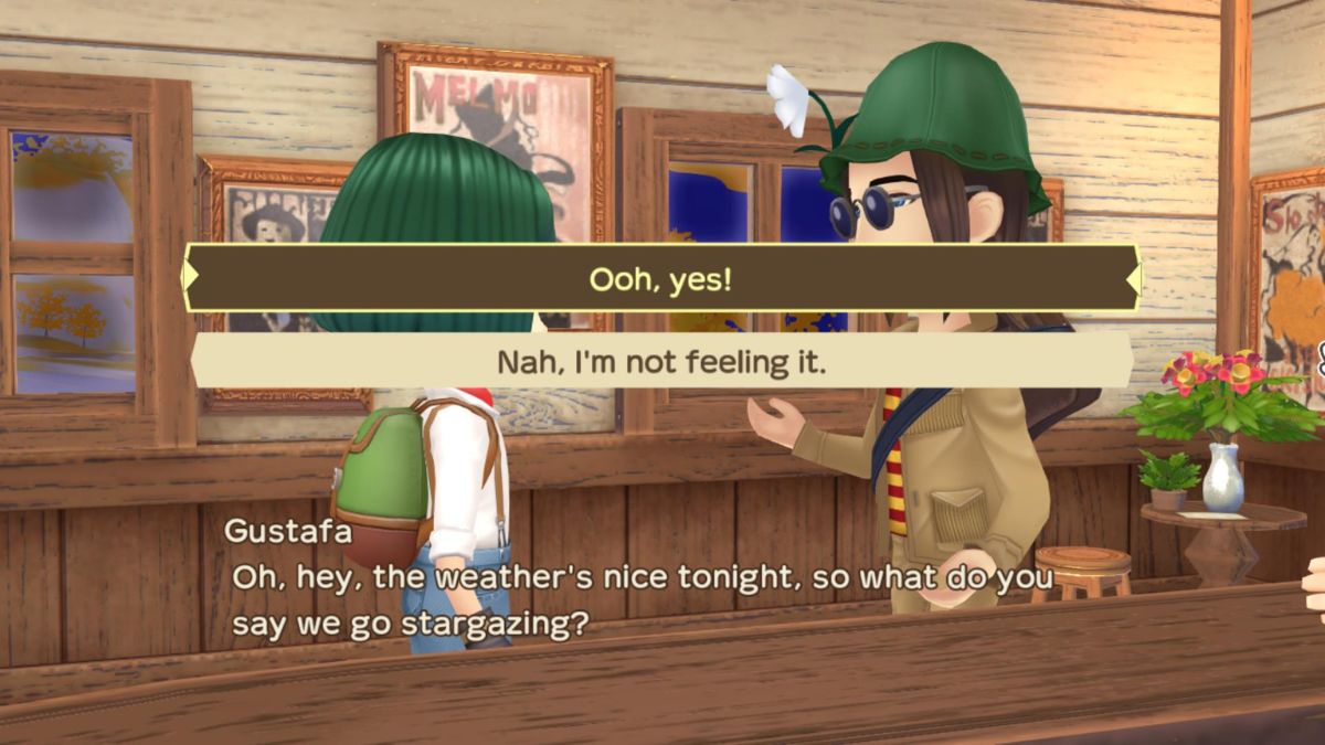 - When Gustafa asks if you’d like to go stargazing, select “Ooh, yes!”