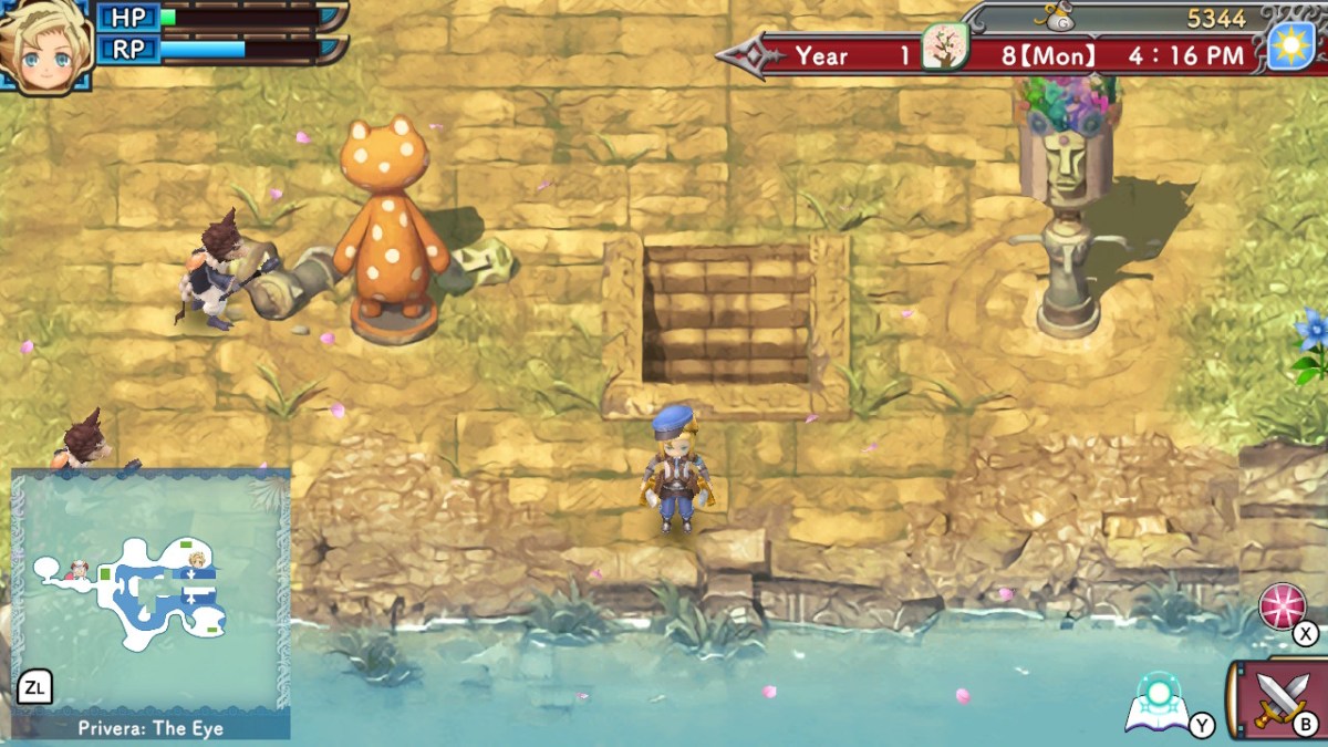 When you head into Privera Forest, you’ll see three paths to the east. The ones you’re concerned with are the northern and southern ones. At the end of each route is a pair of statues that can be rotated. In short, to solve the Privera Forest statue puzzle and face the first Rune Factory 3 Special boss, you need to make them face the ones on the other path. This is what the clue “when we finally see eye to eye, the locked door shall open” means. For the northern path, this means making both statues face south. For the monster/bear one, you’ll need to see all the polka dots on it. With the one that has a human face, that face needs to be fully visible. I recommend beating all monsters and portals here first, so you can complete the task undisturbed. Once you turn them to the proper position, head to the southern path. Once you’re with the two statues to the south, first defeat the enemies and portals. It makes turning the two figures much easier. Once that’s done, rotate both so you see the bare, flat back of the bear/monster and you can only see the complete back of the human’s head. You’ll hear a click, and the staircase will open where the clue about the puzzle appeared. Here’s how both of the statues should look in-game to unlock the entrances: