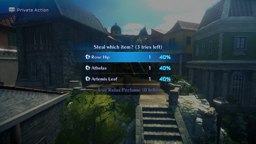 Once you have a Thief’s Glove, head into the IC/Specialties menu. You need to actually turn Pickpocketing on in the menu in Star Ocean The Second Story R. After you do, approaching an NPC in town will let you press the trigger button to start trying to rob them. It’s best to do this when you’re in Private Action mode and nobody is with Rena or Claude, otherwise their allies will think less of them. If you have some of the Relax Perfume support item, the odds of success will also go up.