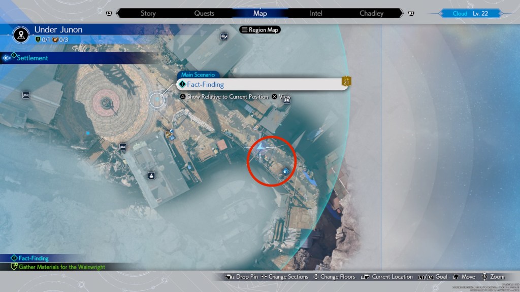 Here’s a screenshot of the map I took that again shows the exact location, as well as some Chocobo Stop and Crow’s Nest fast travel spots near it.