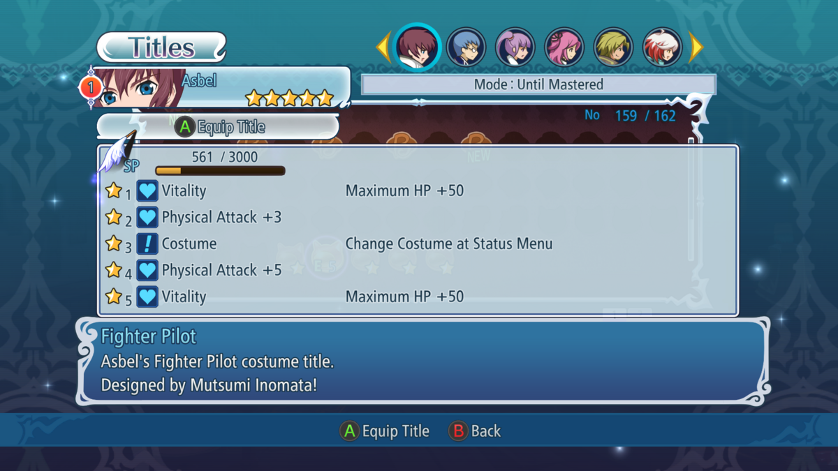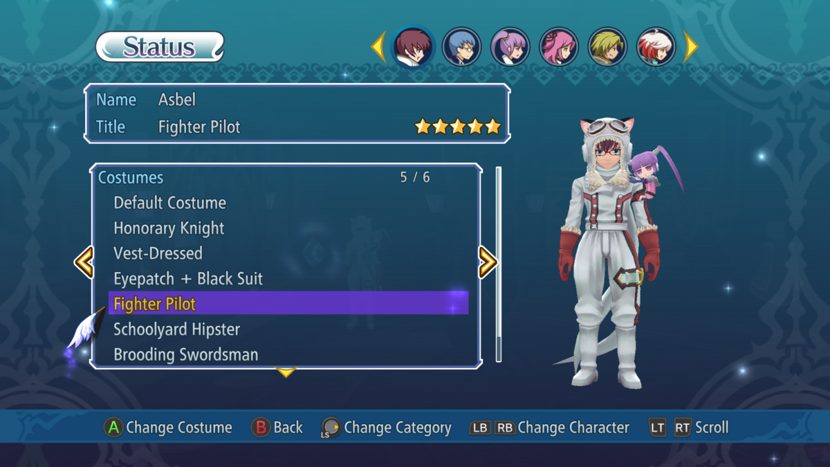 Equipping costumes in Tales of Graces f Remastered is a way more straightforward process. After reaching Level 3 or 5 of a particular costume title, you’ll unlock a skin. Go to the status menu for a character and toggle until the fifth screen of their stats. From here, you can equip the costume onto the character of your choice. The sixth screen is for attachments, which you can use to further customize your character. Accessories range between glasses, bestial or fantastical elements, and dolls.