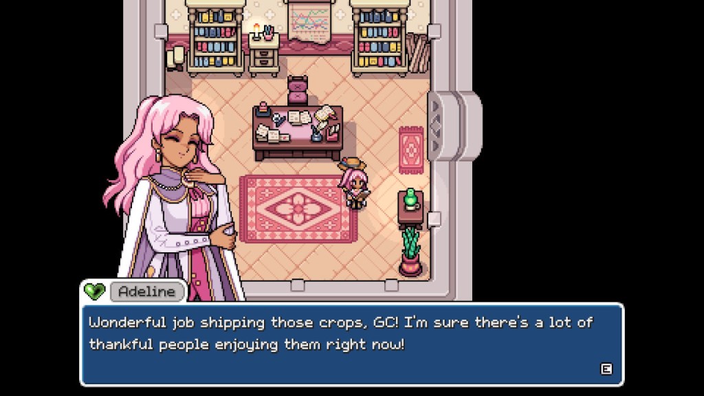 To unlock Crown Requests, you’ll need to raise Mistria’s renown to the sapphire tier. This is achieved by raising the renown level to 50. You can raise renown in a variety of ways, shipping items being one of them. Another way to raise your renown quickly is by donating items to the museum, and completing regular requests. Upon reaching level 50 in renown, you’ll get a letter in the mail from Adeline, who will congratulate you on raising the town’s rank this high. The next day, you’ll get another letter announcing the availability of crown requests.