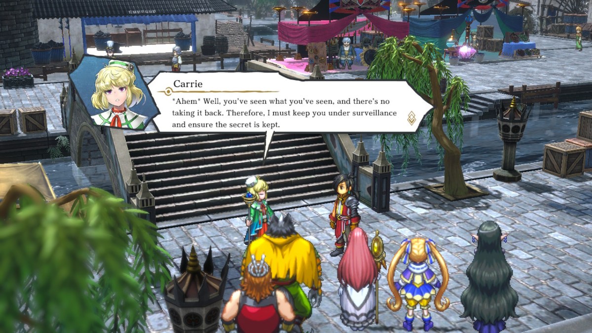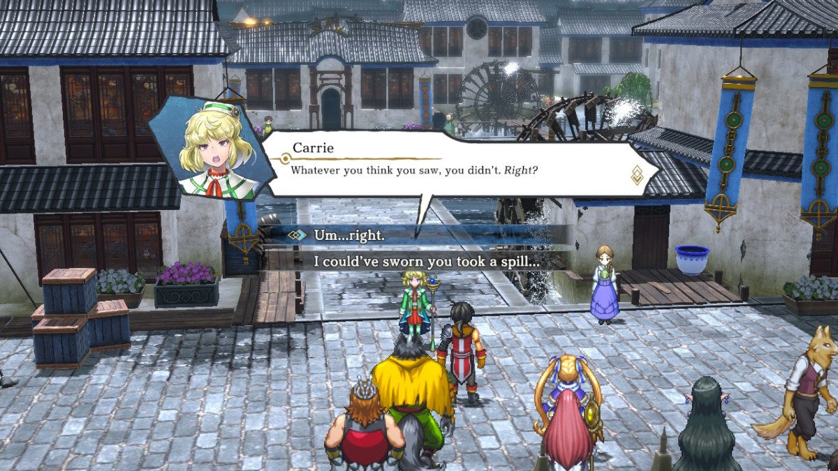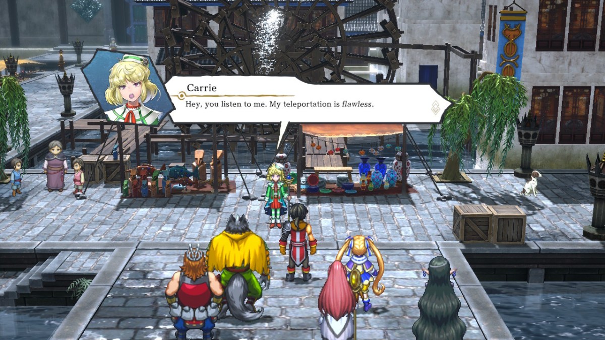 You need to wait a bit longer to unlock proper fast travel around the world in Eiyuden Chronicle, because you won’t meet Carrie until you reach the Euchrisse city of Hishahn. Once you do get there, you need to travel around the town in a specific order in order to trigger encounters with the mage. I did this before going to the inn or palace.