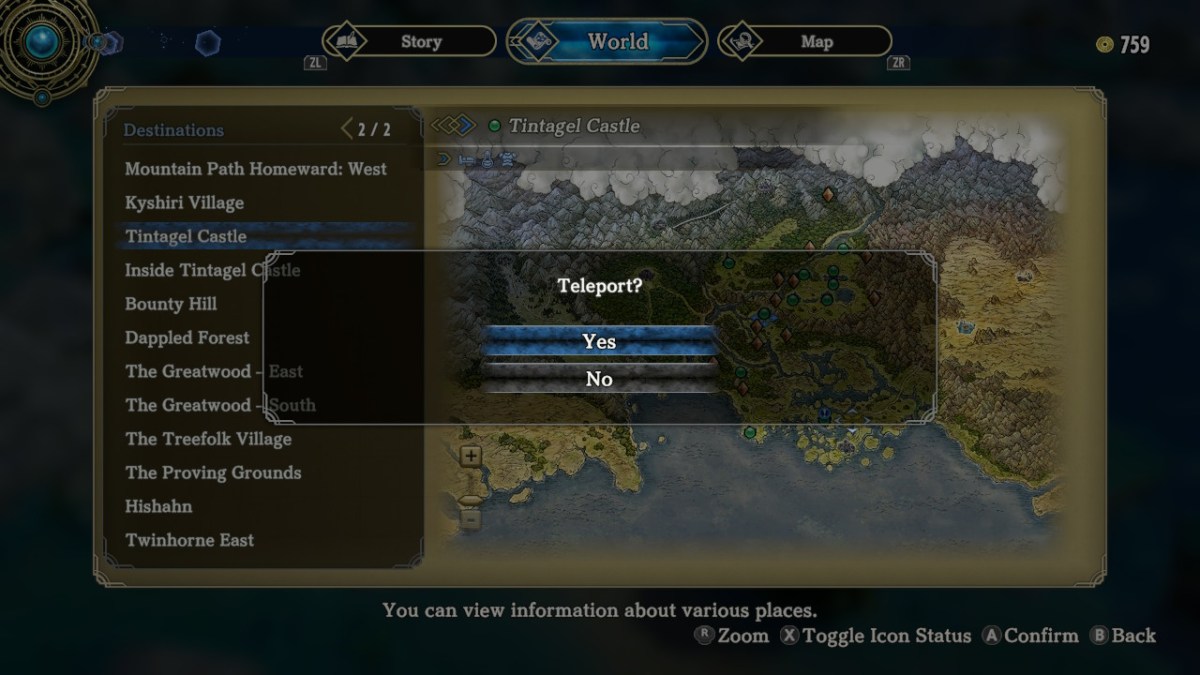 Press the confirm button, and it will come up with a list of places you can teleport to instantly. I managed to finish this before heading to the Treefolk village.