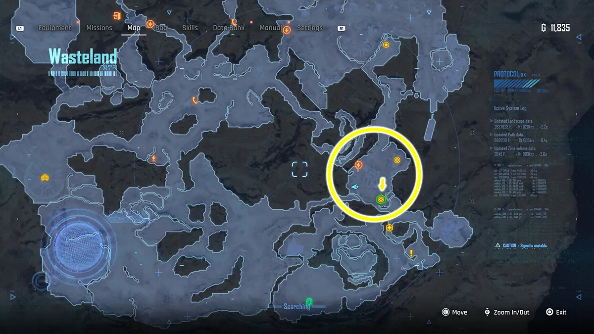- Exit Xion and enter the Wasteland map by traveling through the cave passage north of the city.