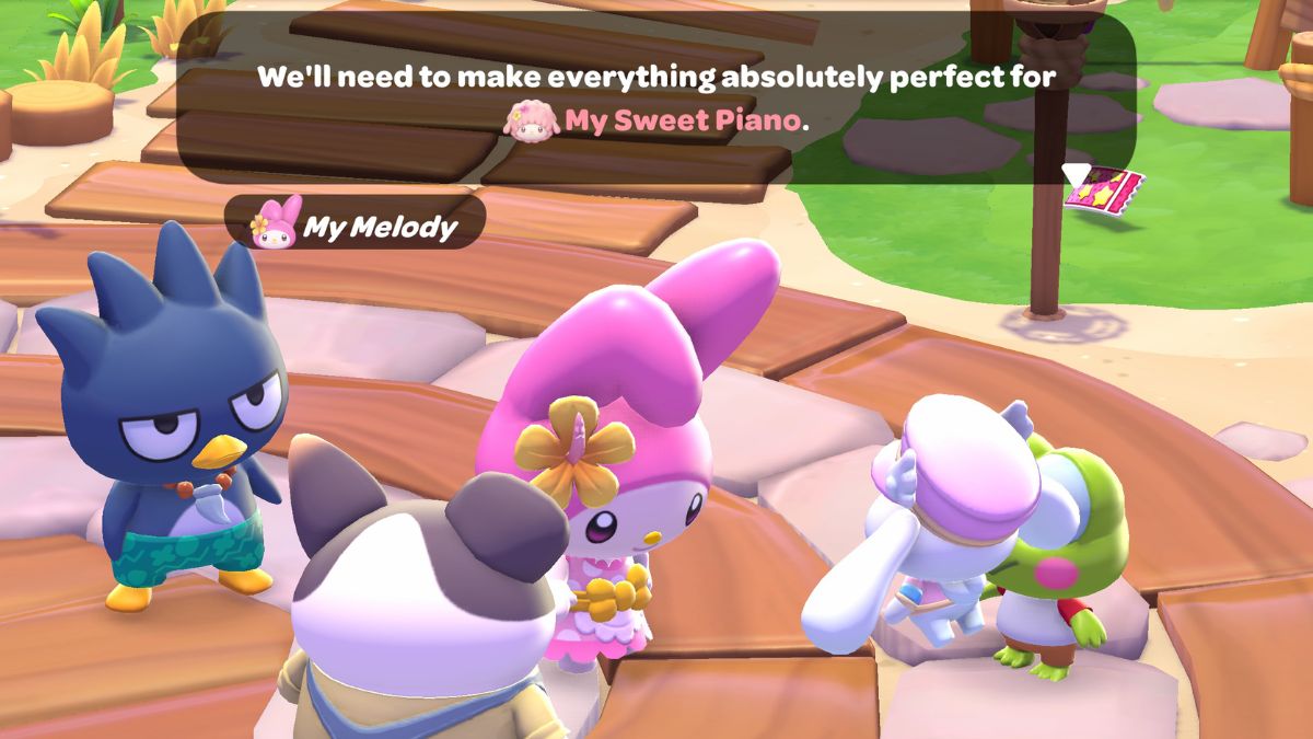 The next day, you should load into the game to see some commotion going on in the Resort Plaza. My Melody will announce that My Sweet Piano is coming to Hello Kitty Island Adventure! The Sanrio character will float down from the sky with balloons and move into your island permanently.