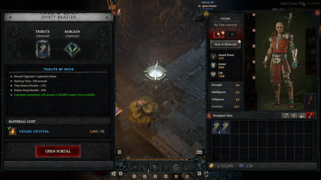 New in Diablo 4 Vessel of Hatred is the Undercity, a dungeon that rewards players for maxing out their carnage within a limited amount of time. Once you have a few Undercity runs under your belt, you might be looking to make things a little more challenging, or earn better rewards. This is where Tributes come in. Tributes are dungeon keys you can offer at the Undercity Spirit Brazier to upgrade the kind of loot you find on your runs. This typically comes at the cost of having less starting time or fewer potions drop while you’re inside the dungeon. Unlocking them is fairly simple, but obtaining them is a little trickier. Read on to learn how to unlock tributes in Diablo 4, how to use them, and where to obtain them.