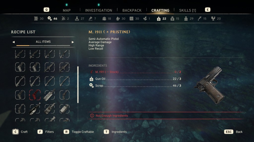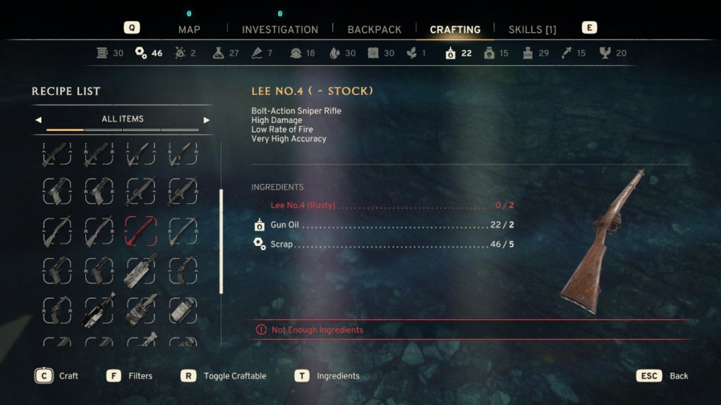 If you don’t see a crafting recipe for the kind of gun you’re trying to make, it might be because you haven’t found or made the lower quality version of it yet. There aren’t many, but some guns in Atomfall are modified from their normal counterparts, and can’t be upgraded. Upgrading your guns in Atomfall makes a huge impact on ammo conservation. Make sure to save up Skill Stimulants for the “Gunsmith” skill! In the meantime, go digging for buried treasure in the zone for Gun Oil and Scraps, or maybe use what you find to trade for the guns you need for upgrades!