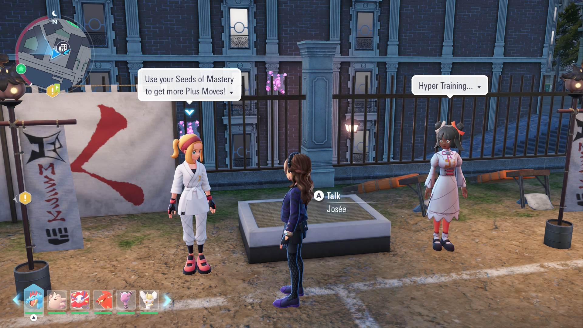 After getting further in the campaign and getting access to the Justice Dojo, you have the opportunity to trade Seeds of Mastery earned through things like the online ranked multiplayer or regular gameplay to change moves into Plus Moves. Now, this should only be done with moves learned via TM. If a Pokemon can normally learn an attack or ability via leveling up, that could naturally become a Plus Move as they level up. Just talk to Josee at the spot below on the map to get more Plus Moves. She is on the south side of the dojo, wears a white karate gi, and has her blond hair in a red headband. She’ll also have a dialogue box above her head that says, “Use your Seeds of Mastery to get more Plus Moves!”