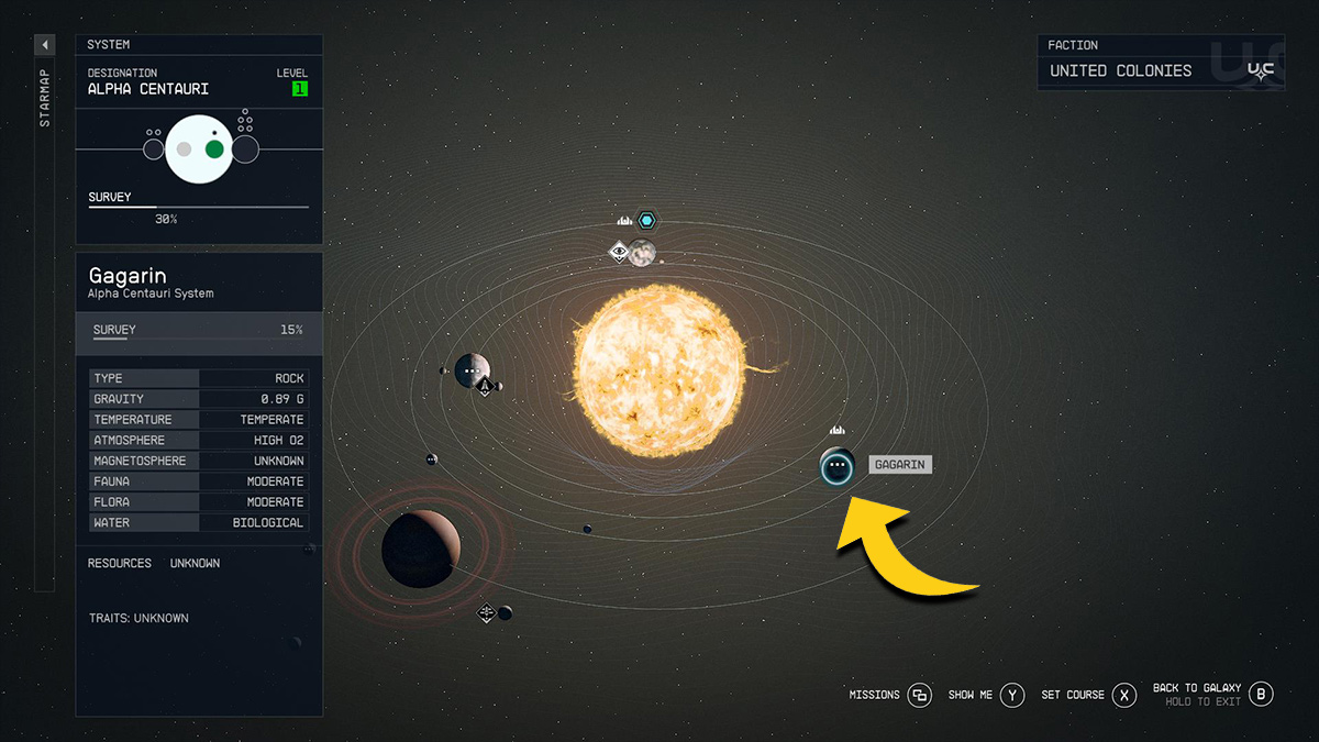 The Sure Bet mission can be found on the planet Gagarin in the Alpha Centauri System. It’s actually located directly next to the beginning-area New Atlantis. So it’s fairly easy to find! Simply pause your game and access your star system map. Once in Alpha Centauri, zoom out and look for Gagarin, which is southeast from Jemison on the right hand of your screen.