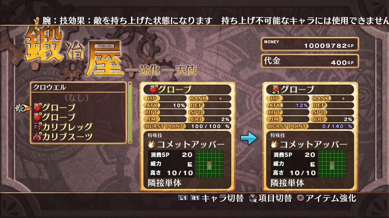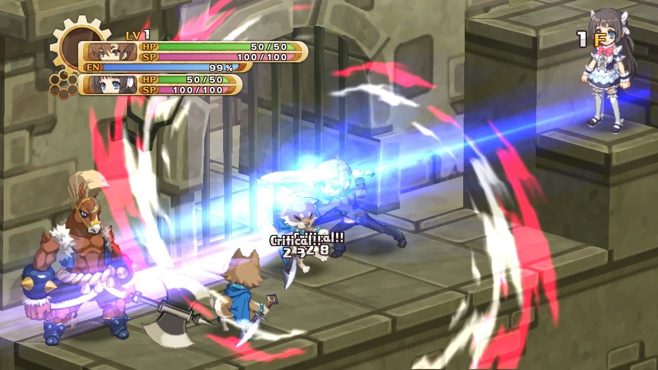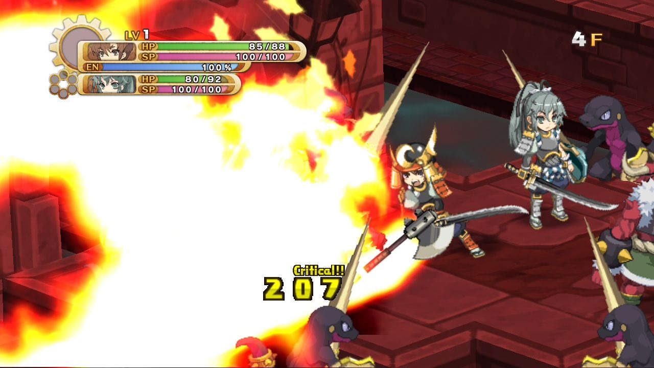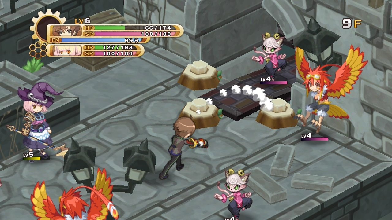 While you can get to level 9,999 in Disgaea, The God and Fate Revolution Paradox resets Renya back to level 1 when you leave a dungeon. Just like Z.H.P. Unlosing Ranger vs. Darkdeath Evilman, players can customize Renya by building Holy Circuits. You can place chips around sacred objects that boost attack, defense, hit, and speed parameters. Complete a whole circuit and you can even more of a bonus.
