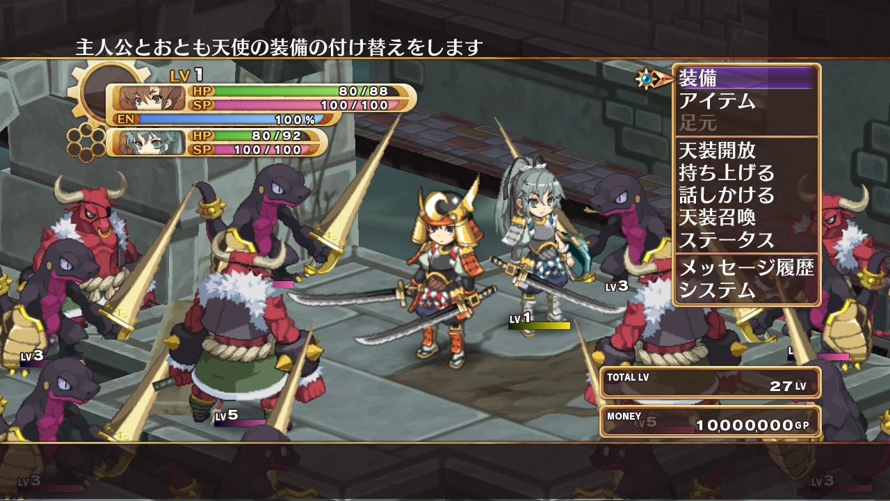 Wearing a Prinny cap is one way to power up Renya and the angels that accompany him in The God and Fate Revolution Paradox. Equipping divine treasures changes what attacks Renya has.