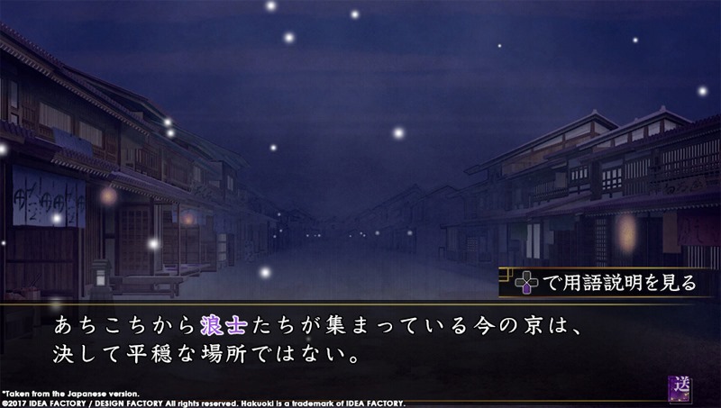 This remastered telling of the beloved visual novel Hakuoki series (first developed and released in 2008) focuses on the story set in Kyoto. The young Chizuru, determined to find her father, will romance the famous samurai of Shinsengumi through a series of engaging stories and dramatic events.