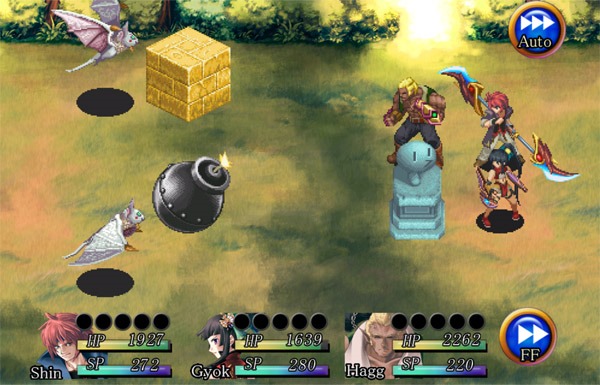Kemco’s RPG has a rather familiar plot, but the battle system is interesting. Soul of Deva blends a grid that you would usually see in a tactical RPG with traditional turn based combat. Attacks hit a range of squares similar to Live-A-Live, but heroes and enemies are on different grids.