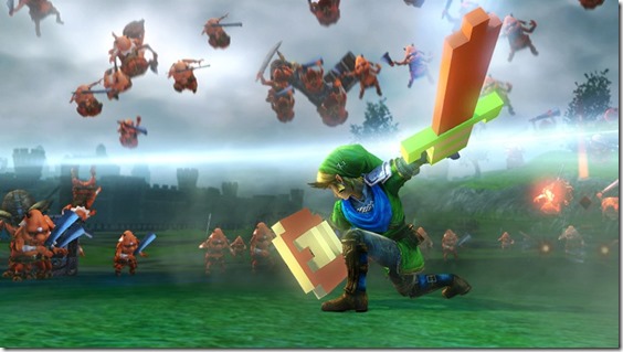 Earlier, Koei Tecmo teased that they’re working on a major update for Hyrule Warriors in Japan, and Nintendo of America confirmed this morning that Hyrule Warriors will be supported “in the long run” with this additional content in the West as well. The first update to the game, however, will be the smaller “Ver. 1.2.0” update that is being released in Japan on September 1st. This update will be available in North America on September 26th, as a day-one update when the game launches, and will add a Challenge Mode, an 8-bit sword weapon for Link, and a BGM options menu. More details on this update can be found in this report from earlier. Nintendo have also confirmed that the various pre-order costumes for Zelda, Link and Ganon will be made available as paid DLC via the Nintendo eShop at a later point in time, and that they will announce price details in the future.