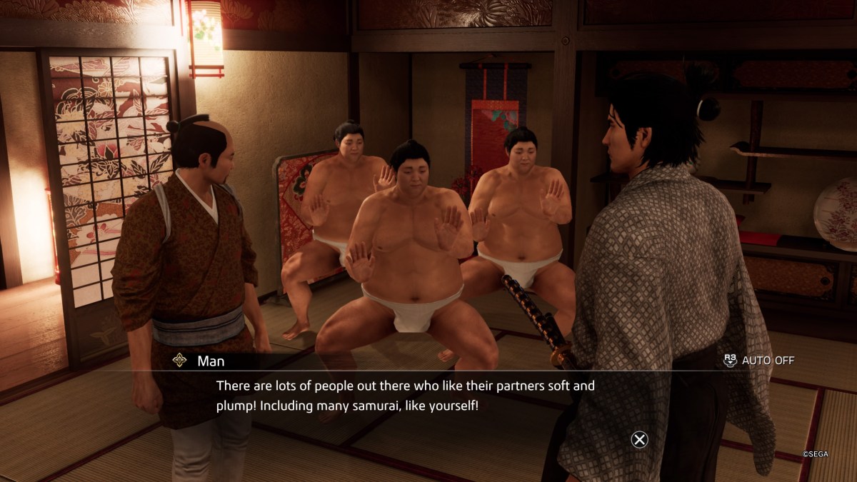 The Yakuza series is no stranger to extremely weird substories, and Like a Dragon: Ishin is no different. We’ve seen people in diapers. The Obatarian’s thoroughly beaten Goro, the Mad Dog himself, Majima. Yet even with all that, I really didn’t expect to see a Like a Dragon: Ishin sumo wrestler brothel substory.
