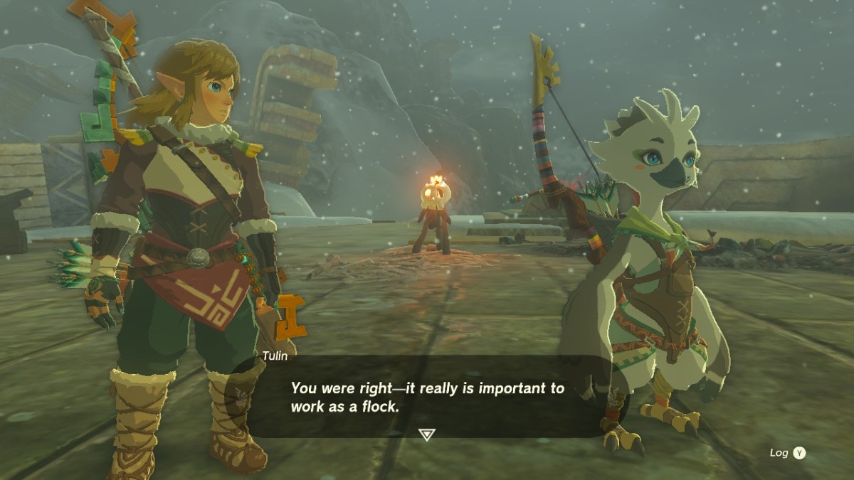 That personality though is really part of what helps Tulin stand out not only among the Rito, but other The Legend of Zelda: Tears of the Kingdom characters. He’s just so determined and earnest. He is going to find a way to help everyone in his village. His skills are strong enough to handle monsters alone. He won’t just take people’s word that something is true and wants to investigate for himself. There’s the arrogance of youth there, but still the innocence too. Especially since he’s willing to admit when he’s wrong and learn from his mistakes. He genuinely does feel like this teenager who can do it all and is maybe getting a bit rebellious, but still possesses this childlike enthusiasm. There’s also the fact that Tulin is a great little buddy due to how practical the Rito’s ability is. All of the Sages have a skill they can use while accompanying Link. Its ability applies in and out of battle. Tulin creates a brief gust of wind. It’s fantastic for exploration purposes, especially early on, because it means what stamina you have goes further, the distance you can travel is greater, and offers a better sense of direction toward an objective. I also appreciate its efforts in-battle too. See, my hand-eye coordination isn’t the best. I can get by in rhythm games just fine, but in platformers or more intense action games, I can get flustered. Especially if it involves carefully aiming. That burst of air that pushes back opponents almost always buys me just enough time to do what I needed to, which means my encounters go much better now that he’s around. But honestly, I’m pretty impressed with little Tulin’s general combat abilities in The Legend of Zelda: Tears of the Kingdom too. Using the bow to attack in the game is pretty great, as a precise shot in a certain place can stun an enemy for a second. I noticed when I’d play that he’s pretty good at getting those hits that throw an opponent off-guard for a second. Which not only benefits him of course, since it means he can follow-up with attacks, but makes my life a lot easier. He does miss sometimes. Nobody’s perfect! He’s still a child! (Besides, I’d wager his aim is still better than mine when in similar situations.) We’ve gotten to see Tulin grow over the course of both The Legend of Zelda: Breath of the Wild and Tears of the Kingdom, and this structure is both to the story’s benefit and our own. We watched this NPC, someone who could have been a throwaway character, grow up into a hero in his own right. We’ve seen his character design change from a chick to a young adult, with changes that signify him growing up and his personality. We’re watching him at an important stage of his life in terms of his development. Plus, we’re getting an ally who can really help both while we’re making our way around Hyrule and dealing with Ganondorf’s hordes. He’s just generally so very good. The Legend of Zelda: Tears of the Kingdom is available for the Nintendo Switch.I Didn’t Know I’d Like The Legend of Zelda: Tears of the Kingdom’s Tulin so Much