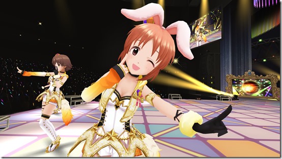The Idolmaster: Cinderella Girls Viewing Revolution is similar to Hatsune Miku: VR Future Live, in that players watch the characters perform songs and have the option to wave glowsticks or other items and cheer for them in time with the music. There can be nine idols onstage at the Maihama Amphitheater at once. It comes with three songs: “Onegai! Cinderella,” “Star!!,” and “Yes! Party Time!!” Anastasia, Chieri, Kanako, Miho, Mika, Miku, Minami, Mio, Miria, Nana, Ranko, Riina, Rika, Rin, and Uzuki are the idols who can appear and perform.