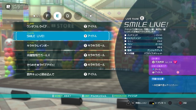 You can coordinate the idols’ outfits to go with the track and stage.