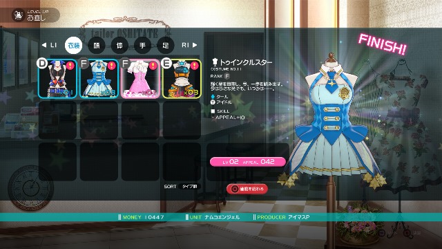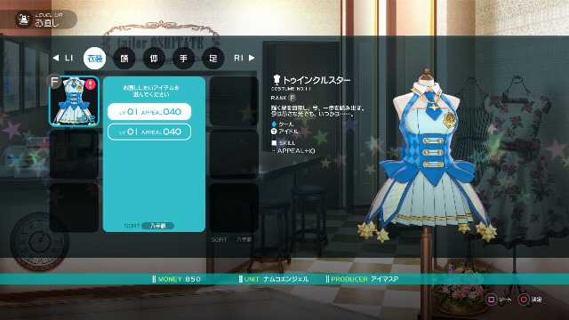 While looks are important, costumes do more than that with their added skills that help add to the appeal of the idols. That said, you’ll be getting plenty of costumes throughout the game. You can also power up outfits and accessories by combining them together. For example, a Twinkle Star LV01 outfit combined with another one makes a Twinkle Star LV02, which has more appeal points.