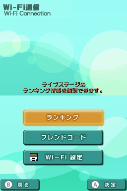 The Nintendo Wi-Fi menu also reveals a feature — an online ranking mode. Locally, players can perform on a live stage, trade items, and do something with download play.