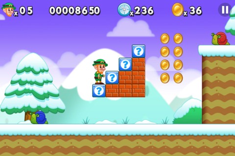 … you would have something a lot like Super Jump World. This iPhone game appears to liberally borrow level designs from the NES Super Mario Bros. games. Most fans will recognize this scene as the beginning of World 1-1.