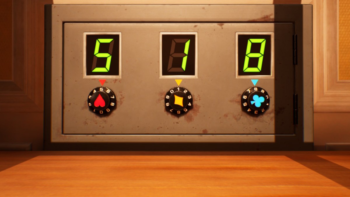 The numbers for the dials on the safe in Hero’s Hideaway in Pikmin 4 and the code corresponds to three cards. So the first one is from the suit of hearts, the second is from the diamond card, and the third is from the club card. To get in, you need to toss a Pikmin of any color at the first one five times, one Pikmin once at the second one, and a Pikmin eight times at the third one. The code is then 518.