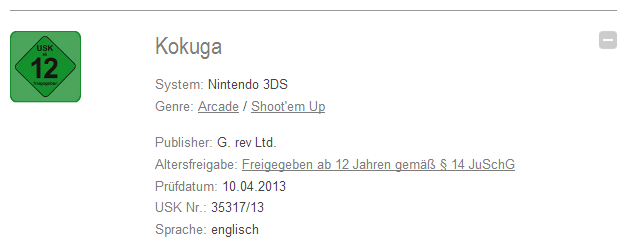 Yeah, it’s in Japanese but soon you’ll be able to play Kokuga in English. Kokuga was rated by Germany’s USK board and it says the text has been translated into English. We’re guessing Kokuga will be released as a digital import on the Nintendo eShop since G.rev is listed as the publisher.