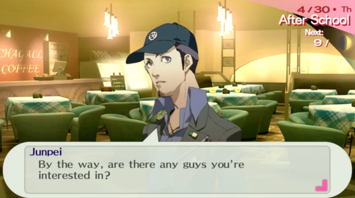 There are some great (and not underage, creepy) romance options we do get with the Persona 3 Portable Social Links. Shinjiro is fantastic. Obnoxious, ever-present bandage aside, Akihiko is also very cool. Basically, Aigis is there as a possible girlfriend too, if you want. I’d even say I consider Shinji my “canon” pairing for the game, given how things turn out. But there’s a level of friendship that develops in Junpei’s route that isn’t present with the other options. Junpei is with you from the beginning. You have a shared foundation and parallel experiences, in a way. Of all the people you know and meet, he’s the first to reach out to you and offer an unconditional level of support. It’s an ideal base for a relationship. Especially since we also see Junpei grow as a character. We get that friendships and people aren’t always perfect with him. There’s a sense of jealousy that comes from the player being picked to lead, rather than him, even though the two joined at the same time. It’s almost as though he feels an obligation or need to be in charge due to stereotypes, and we see him accept that he’s great no matter what position he plays on the team.