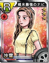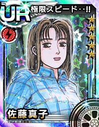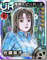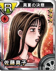 The lady’s pretty, and she’s pretty fast, too. Mako Sato (left) is one of the racers you’ll be able to obtain as a character card in the free-to-play racer Initial D: Perfect Shift Online on the Nintendo 3DS. She ends up with feelings for Iketani and does a mean race.