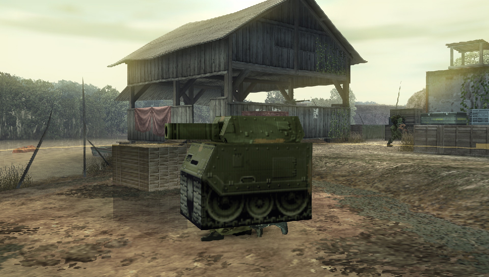 When Snake enters the field he will run into AI Weapons, giant robot adversaries that can sing with Vocaloid voices, the same technology that makes Hatsune Miku. Metal Gear Solid: Peace Walker has airborne, hover, and tank-style vehicles to fight.