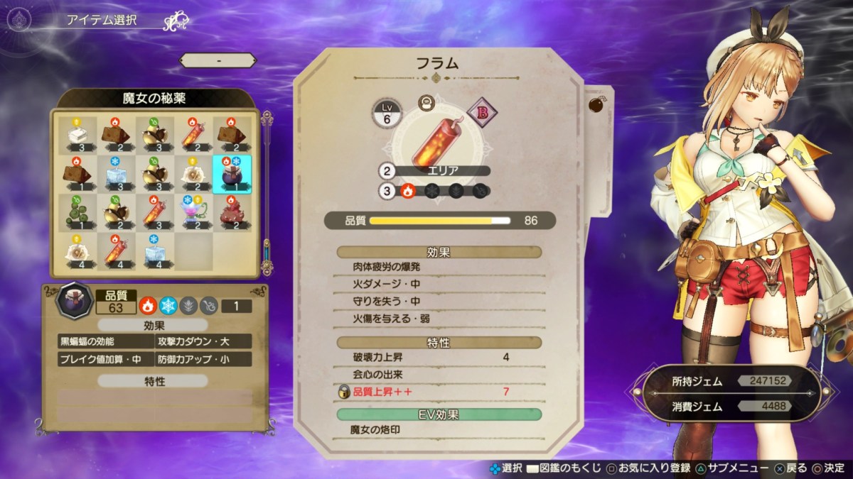 Hosoi: The synthesis in this game is based on system in the previous game, but our goal was to make adjustments to make it easier to understand. For example, the minimum required ingredients was unclear, so we have introduced the Base Material Loop, which is a special type of Material Loop. We have also added many new features, including the Essence which strengthen Material Loops, and Evolution Link which strengthen completed items.