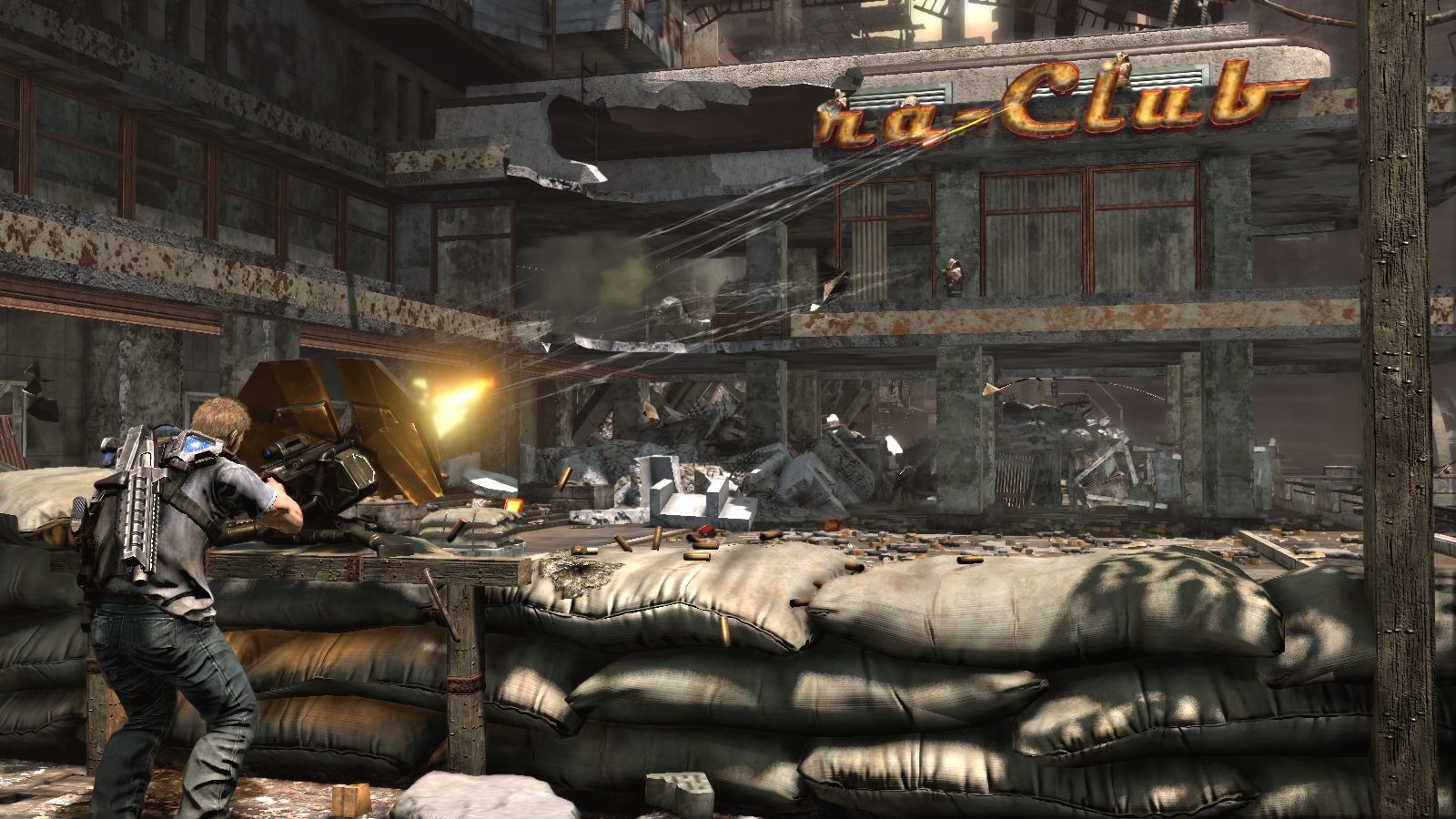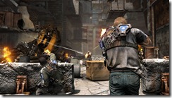 Namco Bandai is dabbling in the cover shooter genre with Inversion and their twist on the genre is twisting gravity. Davis Russel used to be an ordinary cop, but during the events in Inversion he acquires the ability to temporarily disable gravity. Shoot a blue blast at an enemy and they’ll float helplessly in the air. The same move can be used to pick up objects like cars to create cover or squish foes.