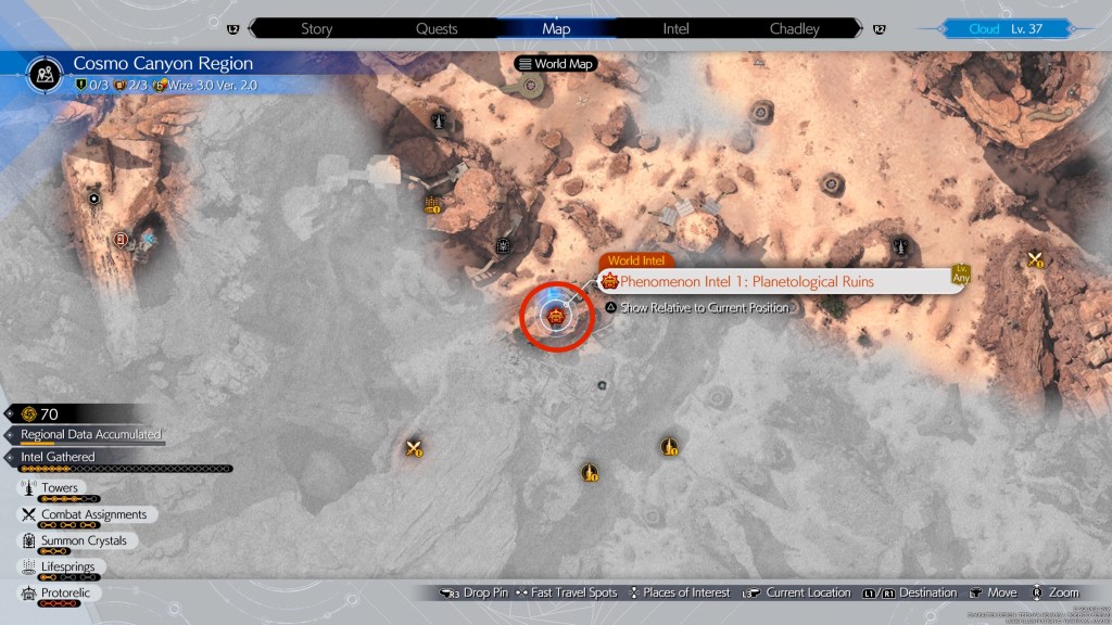 You can begin Phenomenon Intel 1: Planetological Ruins in the Cosmo Canyon Region before boarding Cid’s Tiny Bronco to head to Nibelheim and start Chapter 11. I highlighted the location of it on the map below.