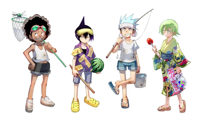 The city of Izumo is collaborating with Shaman King on a “Mera Tabi in the Country of Gods, Izumo” tourism campaign. It’ll run from July 20 to August 31, 2023. Hiroyuki Takei, the mangaka of Shaman King, has drawn illustrations of the Shaman King characters in summer outfits, along with art of three priestesses exclusive to the Izumo campaign.