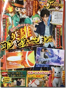 Tsunayoshi Sawada (along with Reborn) from Kakekyou Hitman Reborn! and Tatsumi Oga (along with Beel) from Beelzebub will be playable characters in J-Stars Victory Vs., the latest issue of Japan’s Jump magazine reveals. Meanwhile, joining the roster of support characters are Gintama’s Kagura and Sadaharu. J-Stars Victory Vs. is in development for PlayStation 3 and Vita. The game is slated for release in March 2014 in Japan.